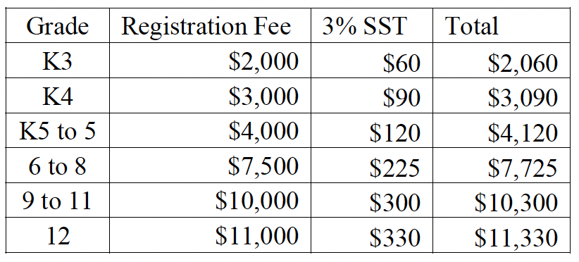 Should a student withdraw from the school and return in less than 12 calendar months, the registration fee will not be levied when that student reapplies. Difference of registration fee will be payable by the student in this case.